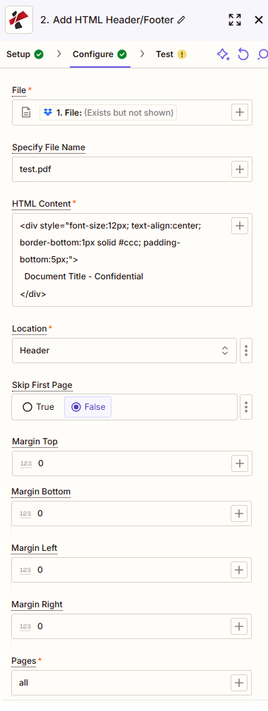 Adicionar cabeçalho e rodapé HTML ao PDF