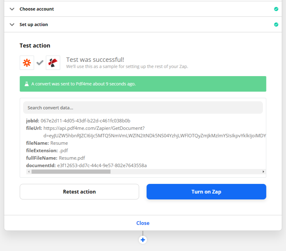 Agora o Pdf4me adicionou sua aplicação no Zapier para estender seu serviço de automação. Qualquer usuário Basic/Pro pode acessar o serviço usando tokens mostrados na página da conta. A chave pode ser passada para o aplicativo Pdf4me listado no Zapier, durante a verificação da conta. Ao concluir a verificação, você vê um e-mail registrado no site PDF4me como nome da conta no Zapier.