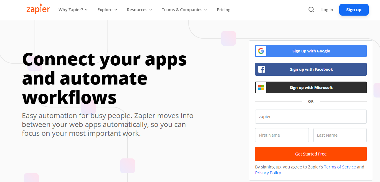 Para criar zaps no Zapier, você precisa criar uma conta Zapier. Você pode se inscrever com uma conta Google, Facebook, Microsoft ou qualquer outro aplicativo de e-mail. O Zapier fornece uma conta de teste gratuita de 14 dias que permite criar zaps de várias etapas. Após o término do período de teste gratuito, você pode criar zaps com dois aplicativos, um para gatilho e outro para ação. Você pode adicionar e testar com vários aplicativos e verificar como eles funcionarão, mas para ativá-los você precisará de um plano pago. A versão básica paga permite criar até 20 zaps.